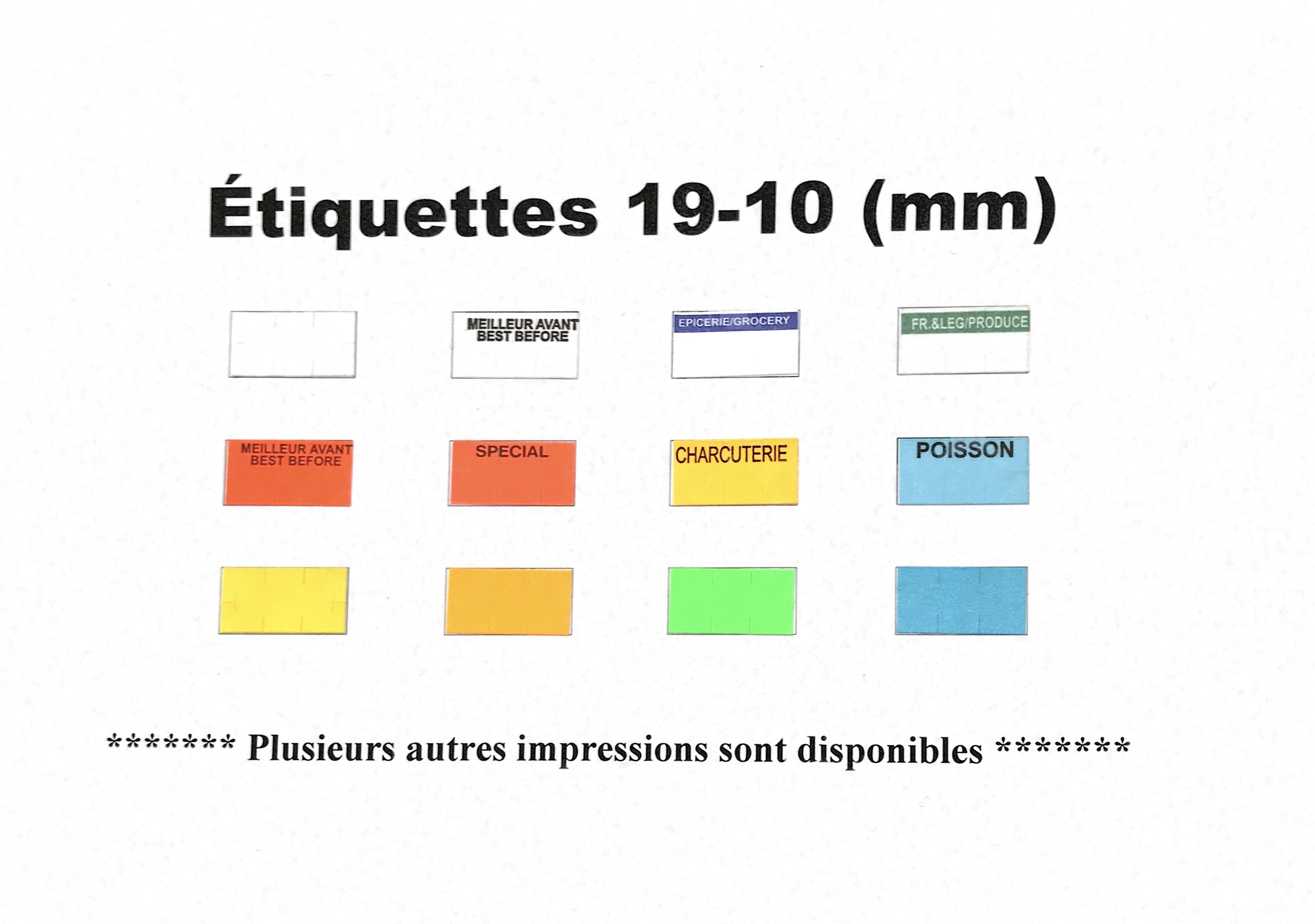 * Les étiquettes 19-10 sont utilisables avec l'étiqueteuse Garvey Impressa et les étiqueteuses Monarch 1105, 1107 et 1110.